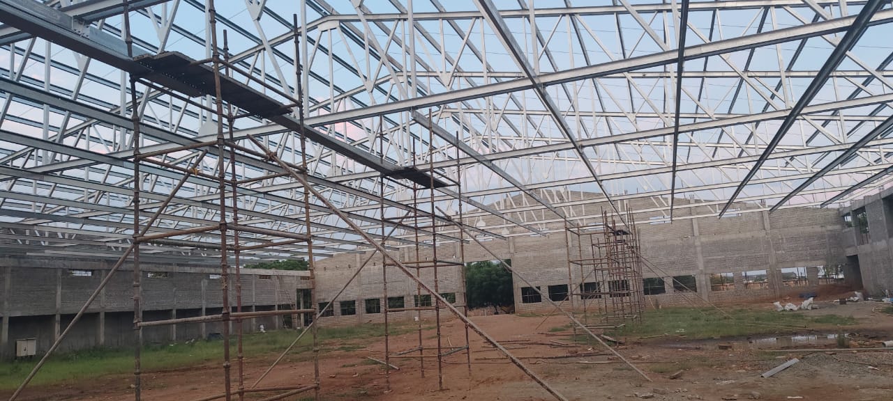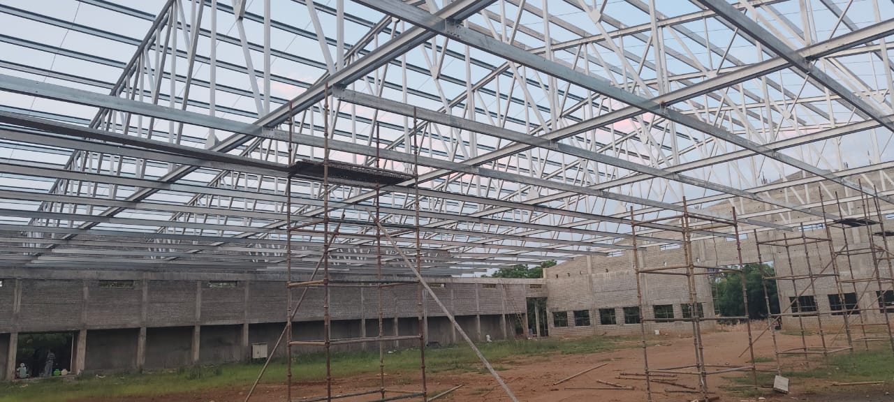 Huge Truss fabrication works also undertaken in many projects. PPGI roofing , Puff insulated roofing are the areas we are specialised ..Proper precautions are taken while designing and executing the job in a professional way and the strength, stability, and durability of the structure are ensured without any compromise in quality..